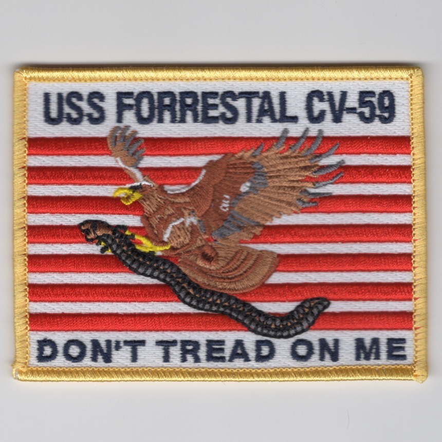 This is the color version of the famous “Don’t Tread on Me” flag worn on the flight suit sleeve by those who served onboard USS FORRESTAL (CV-59). A few years ago, a directive from the US Navy was released that these are now an authorized flag that can be worn on their flight suits (unconfirmed). This patch does not come with velcro attached.