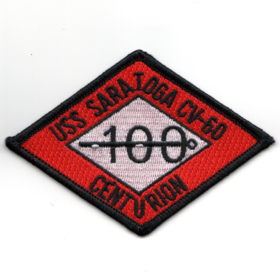 This is the ‘100 TRAPS’/CENTURION diamond-shaped patch created for those who had 100+ landings on the USS Saratoga (CV-60). This patch does not come with velcro attached.
