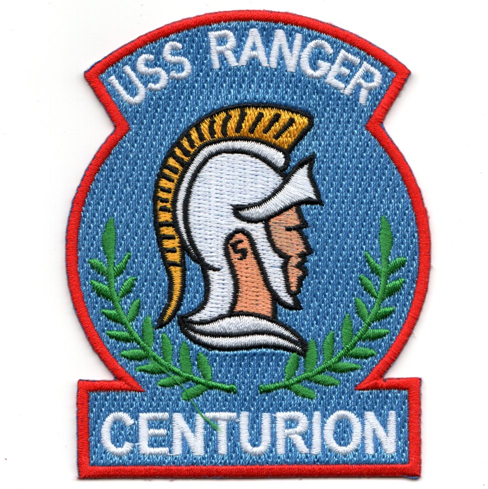 This is the blue ‘ROMAN-head’ version of the USS Ranger (CV-61) Centurion patch that commemorates a minimum of 100 total aircraft carrier landings on that specific carrier. This patch does NOT come with velcro attached. It was used in the 1986 movie ‘TOPGUN’ also.