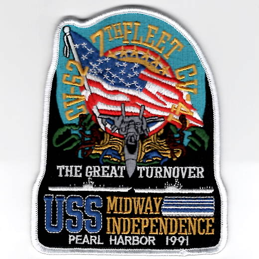 This patch was created for CV-62 / CV-41 / 7th FLEET that says “”””THE GREAT TURNOVER””””. It was created to commemorate the 1991 PEARL HARBOR Anniversary as one of these aircraft carriers / Airwings relieved the other for the Western Pacific deployment / deterrence. This patch was found in VERY LIMITED supplies at a Thrift Store (yep) in Hawaii. This patch does not come with velcro attached.