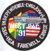 This is the final cruise patch from Airwing 14 when they were onboard the USS Independence. This was a cruise out of Japan that went through the Indian Ocean up to the Persian Gulf.