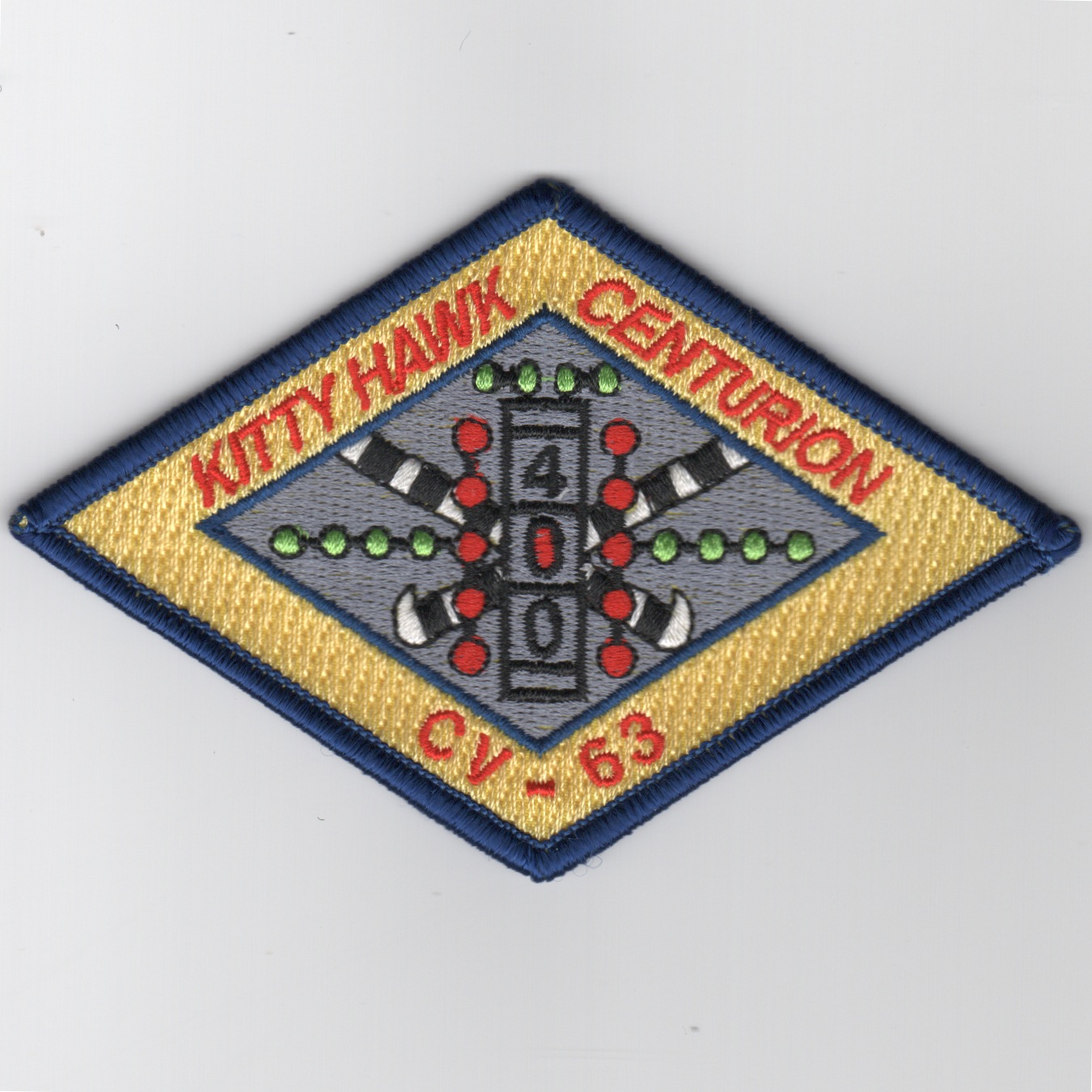 This is the 400 Traps patch for the CV-63 USS Kitty Hawk and does not have velcro attached.