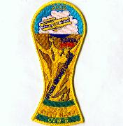 This is the “”””soccer cup”””” cruise patch for the VF-154 Black Knights of Airwing 5 when they cruised onboard the USS Kitty Hawk. This was a Pacific cruise that went through the Indian Ocean into the Persian Gulf.