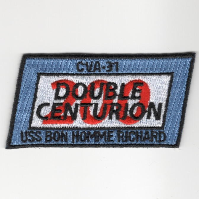 This is the 200 (Double-Centurion) traps patch for the CVA-31/USS Bon Homme Richard. It is computer-made and does not come with velcro attached.
