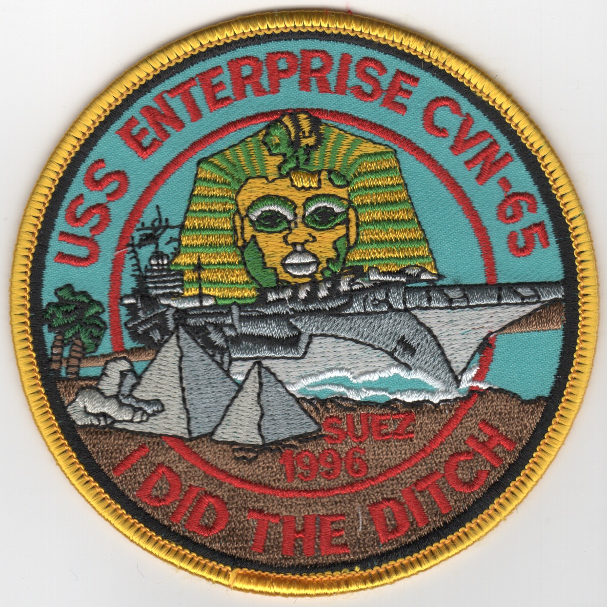 This is the “”””SUEZ CANAL/I DID THE DITCH”””” patch from the CVN-65 1996 Mediterranean cruise with Airwing 17 onboard…..we ran on the flight deck the entire time the boat was in the Ditch. This patch does not come with velcro attached.