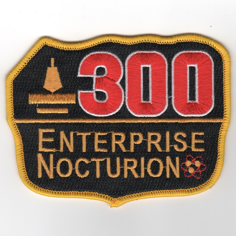 The world’s first nuclear-powered aircraft carrier and the eighth ship to carry this proud name, the Big ‘E’ was commissioned on 24 November 1961. This is the “300 Total night traps” patch for having landed on her that many times in the dark! This patch does not have velcro attached.