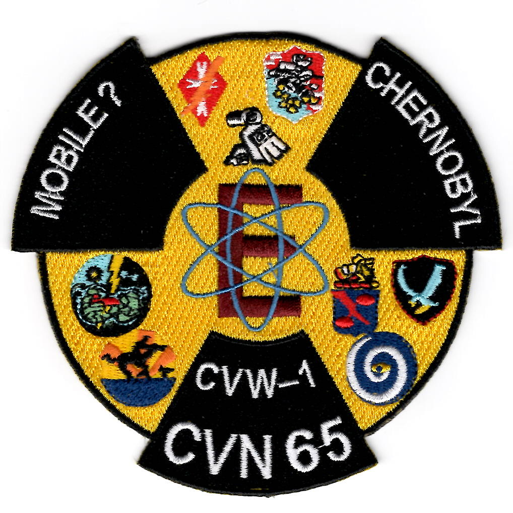This is one of the USS Enterprise (CVN-65) / Carrier Airwing One (CVW-1) cruise patches created for their 2004 Mediterranean cruise! It says “”””MOBILE CHERNOBYL”””” (in white letters) and shows the squadron logos of all those in the Airwing. This patch does not come with velcro attached.
