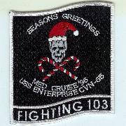 VF-103 was established in May 1952 and began the transition from F-4S Phantoms to the F-14A Tomcat in January 1983. The ‘Sluggers’ were with the USS Saratoga in CVW-17 for the majority of her time, before switching to the USS Enterprise. VF-103 adopted the “Skull and Crossbones” of VF-84 to continue their tradition. VF-103 painted the vertical tails of one of their jets with this schematic on the 1996 Med Cruise they were on. I saw this firsthand, as I was on that cruise also.