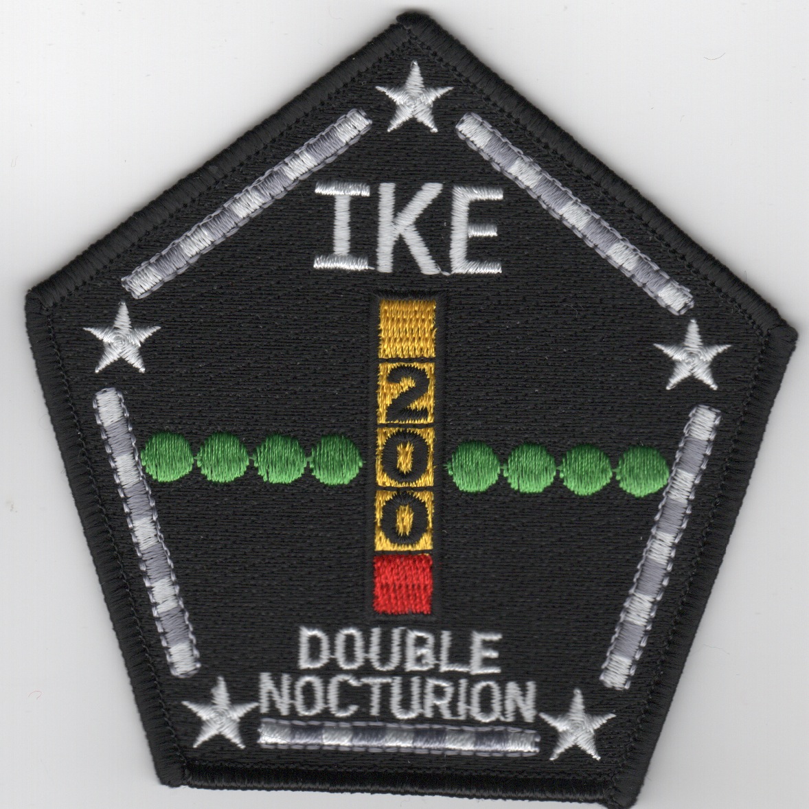 This is the “”””200-NIGHT-Traps”””” patch for the Ike and says “”””DOUBLE NOCTURION”””” along the bottom. It denotes that you have landed on the boat 200 times AT NIGHT. Usually takes a couple of cruises (or more) to get this…..
