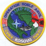 This is the cruise patch from the USS Theodore Roosevelt and Air Wing 8 back in ’99 during the Kosovo Crisis. This one denotes the official name of the conflict, “Operation Noble Anvil”. This is one of 6 of the CVN-71/CVW-8 Kosovo Crisis Cruise patches in 1999.
