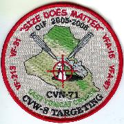 This cruise patch comes from CVN-71, the USS Theodore Roosevelt. It’s one of the “LAST TOMCAT” cruise patches being created for VF-31 and VF-213’s last cruise. It states “Size Does Matter” for their OIF tour of 2005-2006 and shows missiles being targeted.
