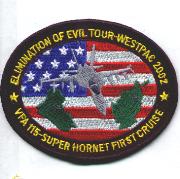 The ‘Eagles’ have a long history, beginning as Torpedo Squadron 11 in October 1942. They became VA-115 in July 1948, and for many years were nicknamed the “Arabs” until changed for obvious reasons. They also gave up their Intruders based out of NAS Whidbey Island in the early ’90s and transitioned to the F/A-18C Hornet flying out of NAS Lemoore, CA. This is the “Elimination of Evil” tour, which was the FIRST cruise for the F/A-18 E/F Super Hornet!