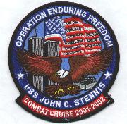 This is the cruise patch for Operation Enduring Freedom for VF-211 onboard the USS John C. Stennis (CVN-74) as a part of CVW-9.