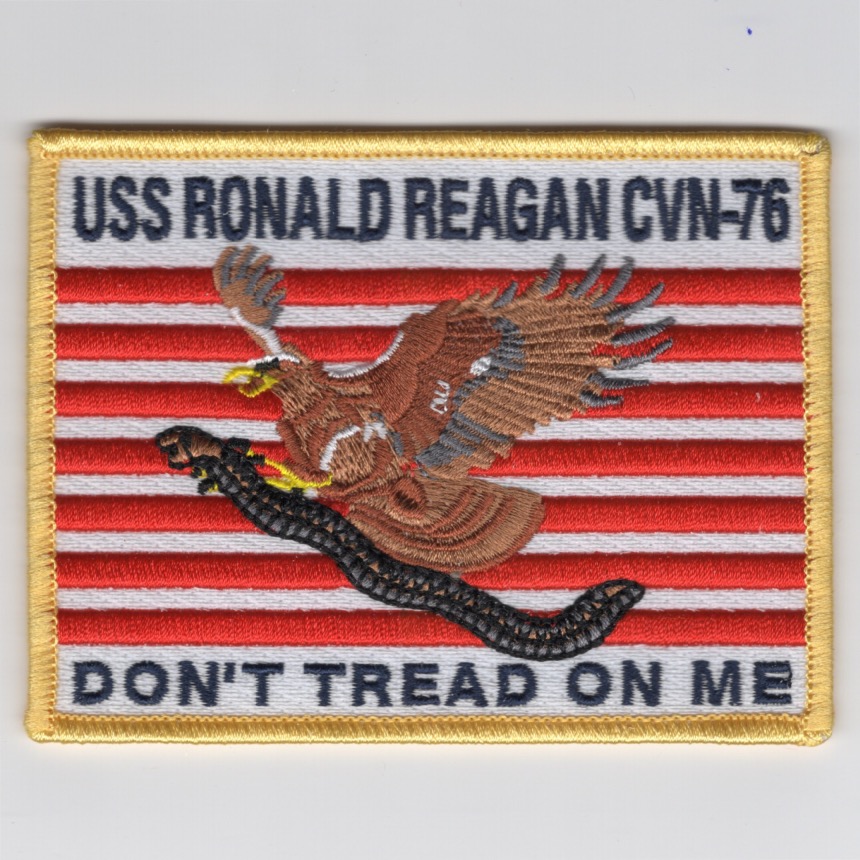 This is the color version of the famous “Don’t Tread on Me” flag worn on the flight suit sleeve by those who served onboard USS REAGAN (CVN-76). A few years ago, a directive from the US Navy was released that these are now an authorized flag that can be worn on their flight suits (unconfirmed). This patch does not come with velcro attached.