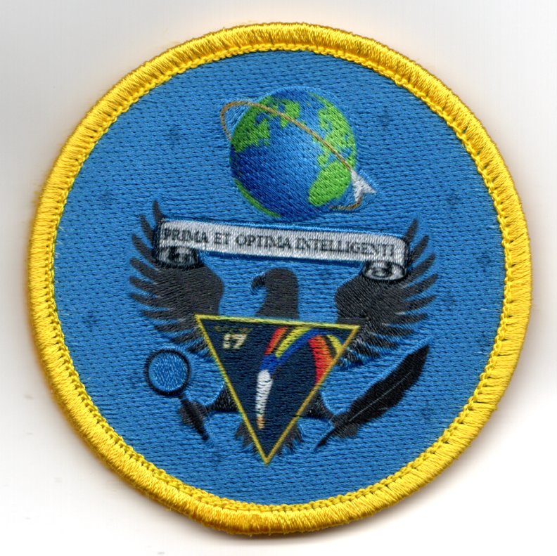 (Another AV8RSTUFF Creation): This is the blue/yellow version of the CVW-17 INTELLIGENCE Department patch. It depicts the Earth being monitored with the Airwing Logo on a blue background, yellow border, and has yellow velcro attached.