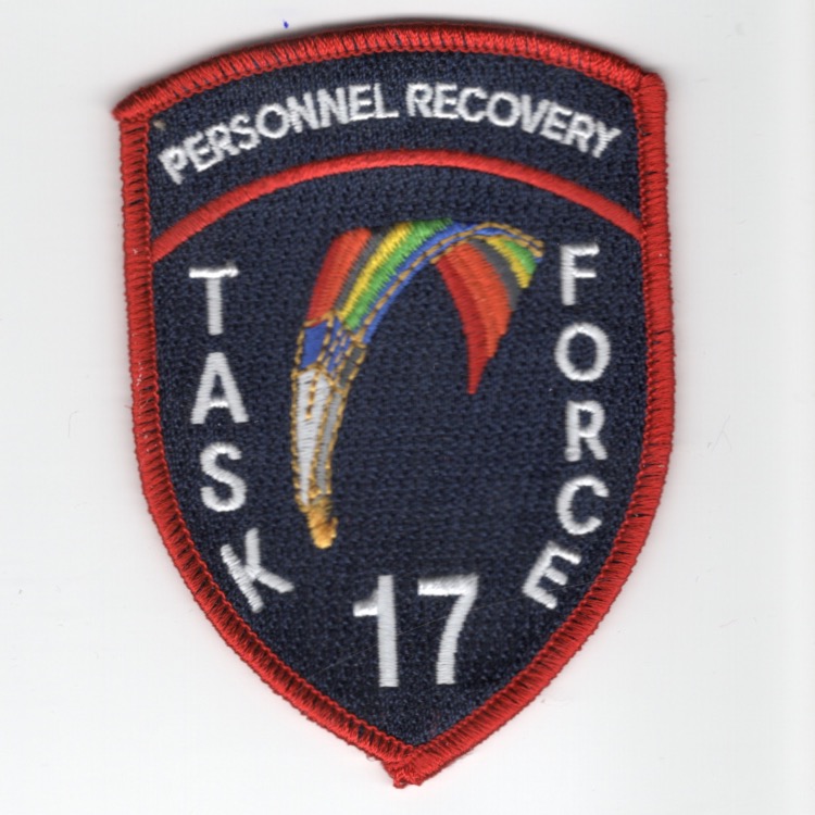 Carrier Air Wing Seventeen (CVW-17) is a U.S. Navy strike fighter wing based at NAS Lemoore, CA, typically attached to Carrier Strike Group 11 (CSG-11) and the USS Nimitz (CVN 68). It consists of nine squadrons, including F/A-18E/F Super Hornets, electronic warfare, and aerial logistics units, designed for maritime superiority, power projection, and combat operations. This is the dark blue version of their TASK FORCE shield patch that says “PERSONNEL RECOVERY” and does not have velcro attached.