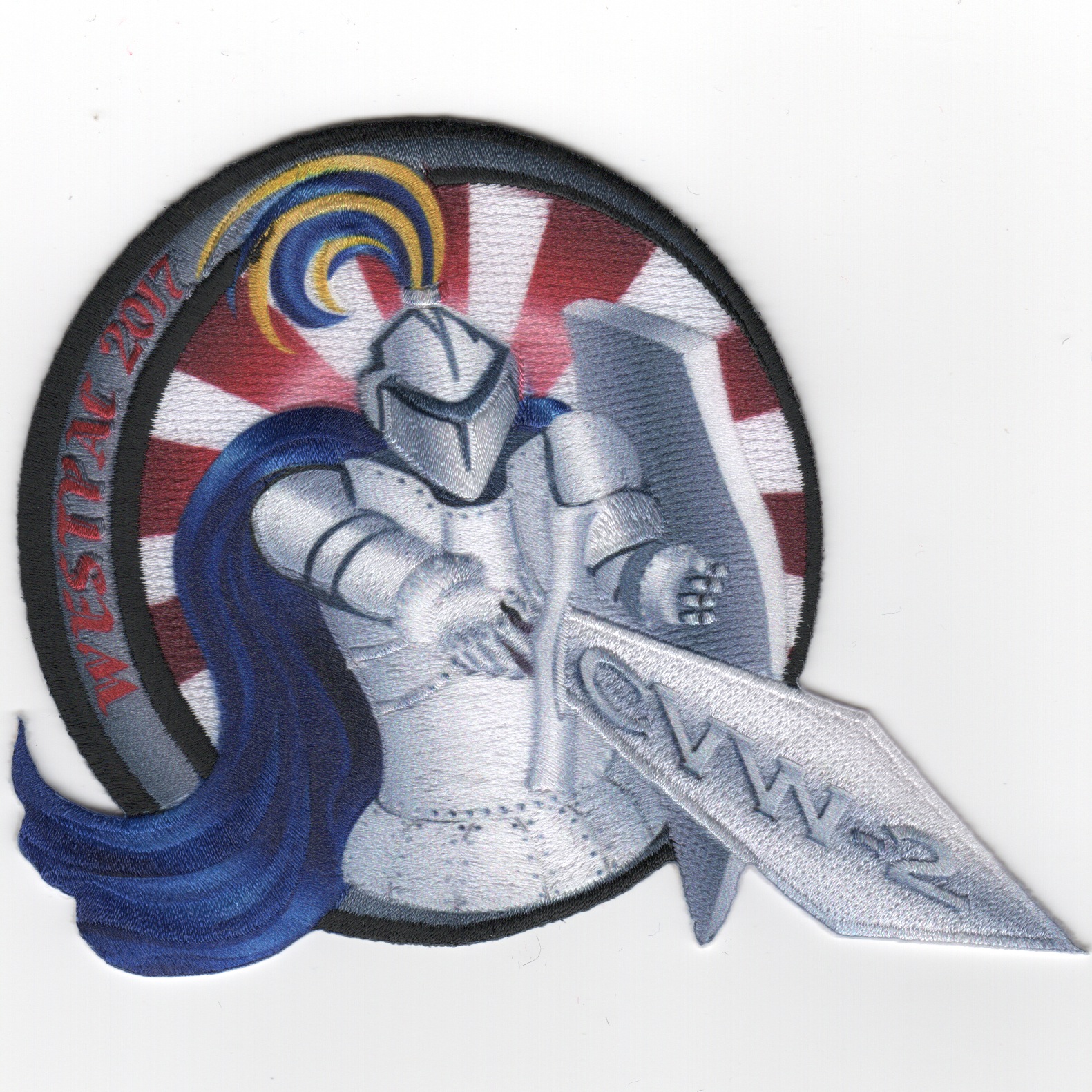 This is one of the 2017 WestPac cruise patches created by CVW-2 while onboard the USS Carl Vinson (CVN-70) using the new ‘hubrid/sublimation’ technology giving incredible detail. It says “”””WESTPAC 2017″””” on the left side and says “”””CVW-2″””” on the blade of the sword. Yet another of AV8RSTUFF designs created for them……this patch does not come with velcro.