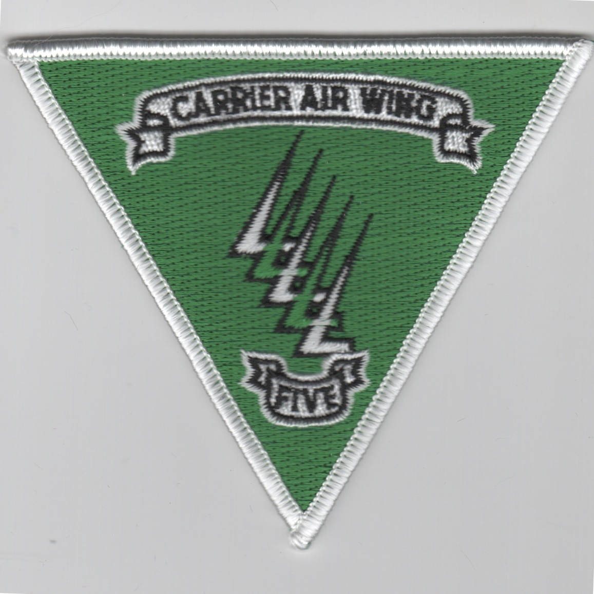 This is the green (w/white border) version of the Carrier Airwing 5 patch for the Air Group flying out of NAS Atsugi, Japan.