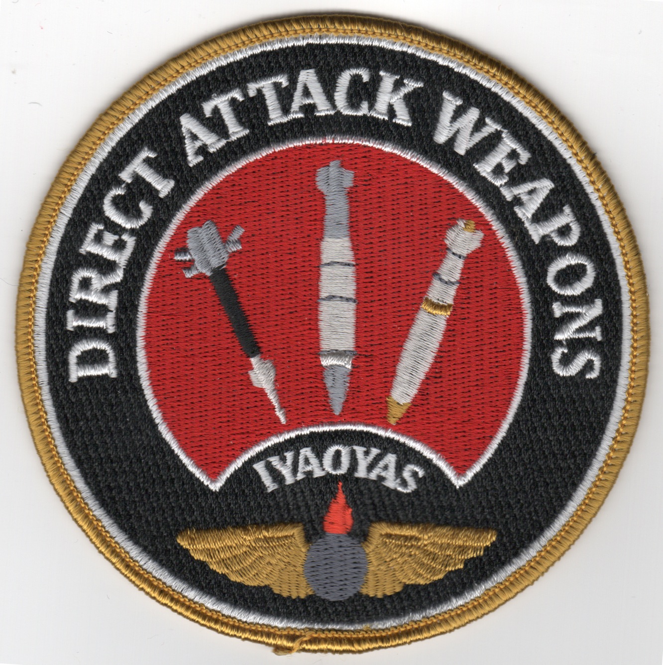 This patch was created for the “Red Shirts” of CVW-8. It says “DIRECT ATTACK WEAPONS” along the top and “IYAOYAS” (IF YOU AIN’T ORDNANCE, YOU AIN’T SHIT) along the bottom. This patch does not come with velcro attached.
