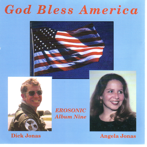 This is the Dick Jonas Volume 9 CD (of his 32 albums). DickÕs daughter, Angela Jonas, picks up the torch with ÒGod Bless America,Ó ÒDanny Boy,Ó and her own special a cappella version of ÒAmazing Grace.Ó Dick continues the fighter pilot doggerel. E-mail me (below) for any further details/questions you may have. (14 songs)