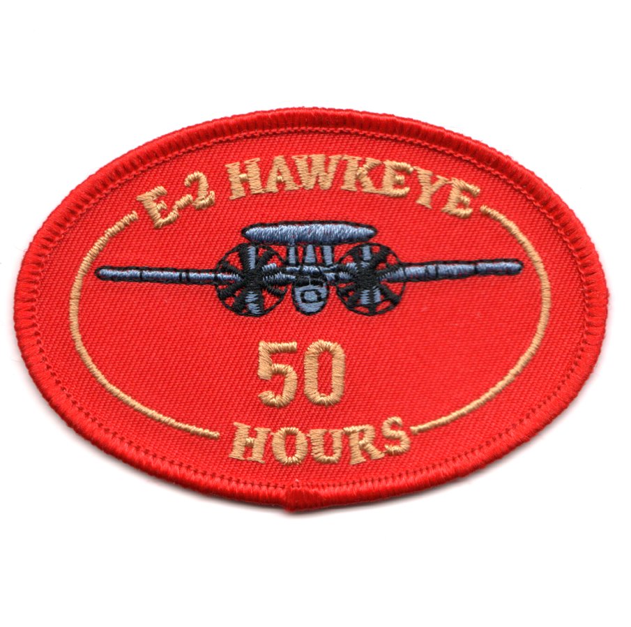 (Another AV8RSTUFF Creation): This is the new ‘E-2’ (note no ‘C’) red, 50-HOURS oval (for the new ‘E-2D’ aircraft). This patch does not have velcro attached.