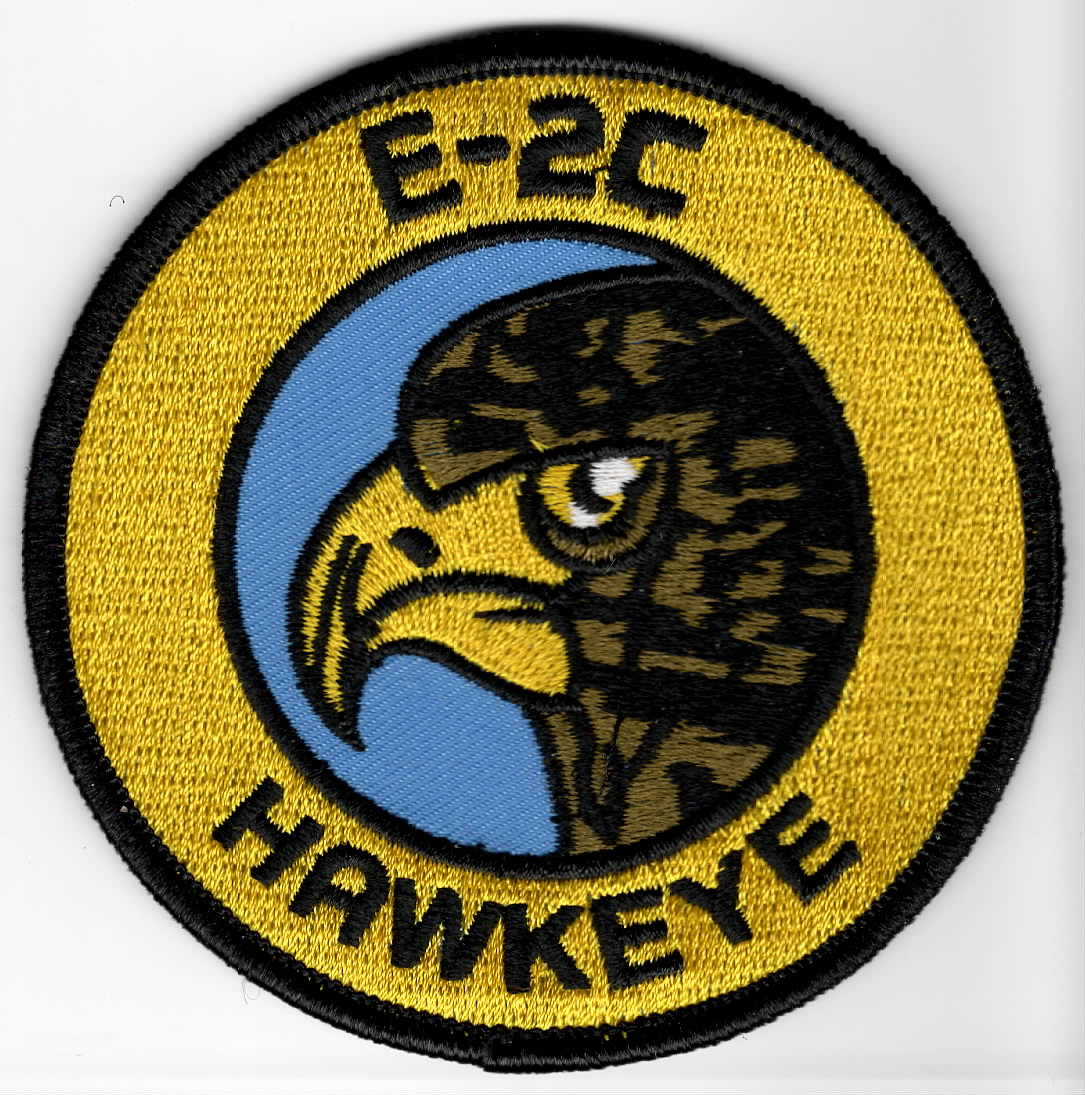 This is the yellow version of the E-2C Hawkeye shoulder patch created for the Navy’s Early Warning aircraft. It shows the “”””HAWKEYE’s”””” bird head staring at a target and does not come with velcro attached.