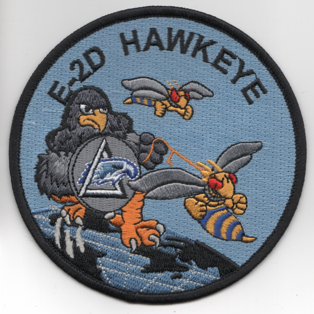 This is the round, blue version of the E-2D Hawkeye aircraft patch depicting the “Hawkeye” hold a HORNET on a leash, it being ready to attack. The Hawkeye crews run the “air and ground war” for the Navy, so they have the authority to task the Fighter/Attack aircraft. This patch does not come with velcro attached.