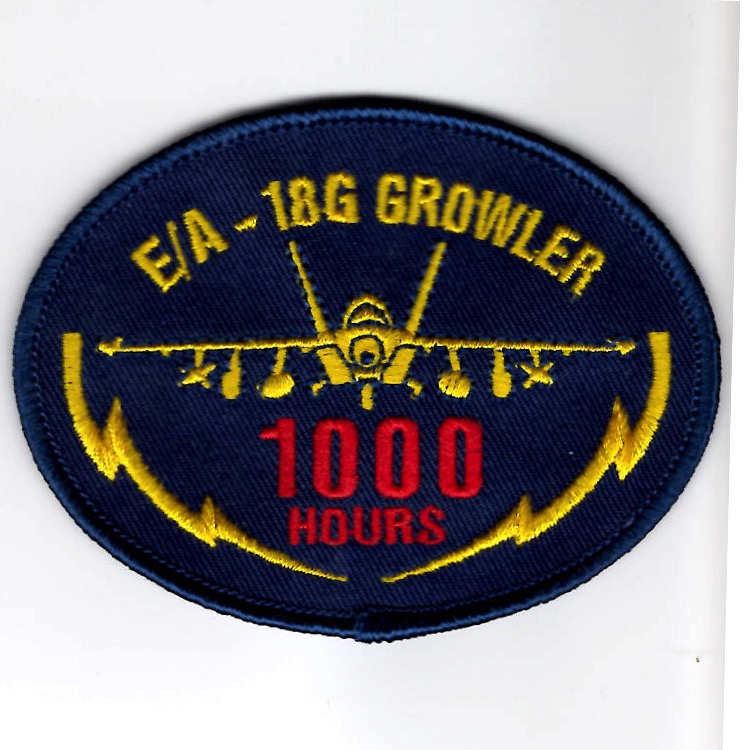 This is the ‘blue’ version (with the blue border) of the E/A-18G GROWLER *1000 HOURS* Oval patch for those who have reached this milestone with the number of hours in the aircraft. This version of the patch does NOT come with velcro attached.