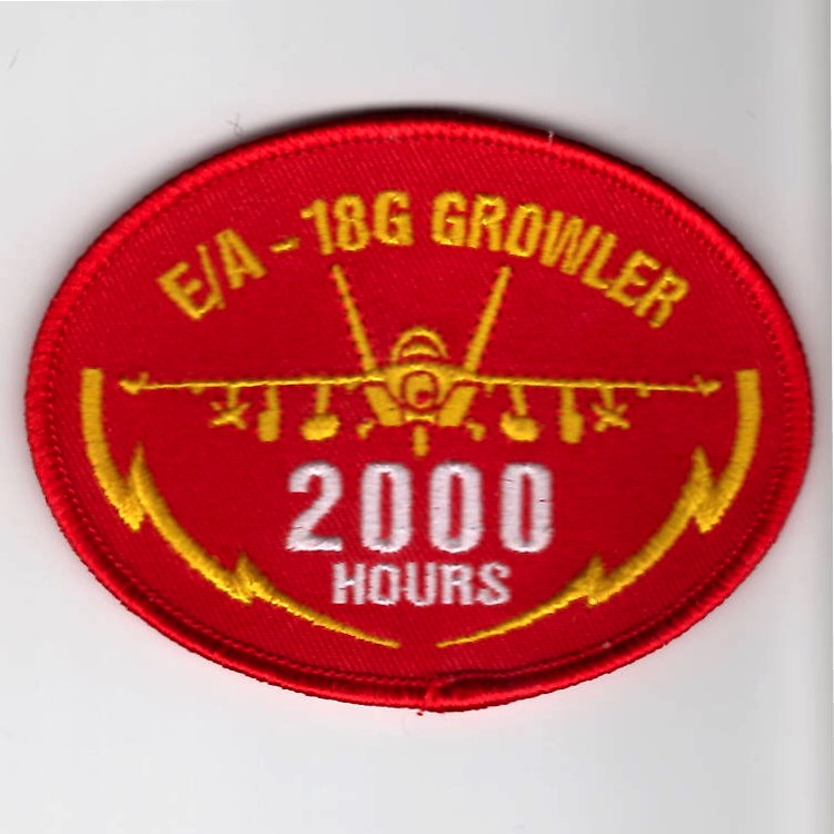 This is the ‘red’ version (with the red border) of the E/A-18G GROWLER *2000 HOURS* Oval patch for those who have reached this milestone with the number of hours in the aircraft. This version of the patch DOES come with velcro attached.