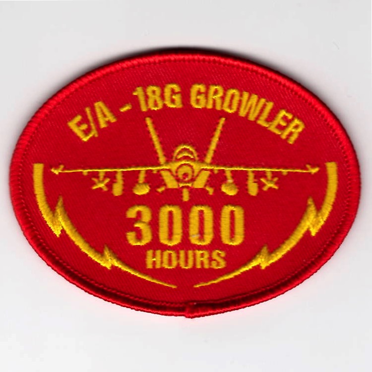 This is the ‘red’ version (with the red border) of the E/A-18G GROWLER *3000 HOURS* Oval patch for those who have reached this milestone with the number of hours in the aircraft. This version of the patch does NOT come with velcro attached.