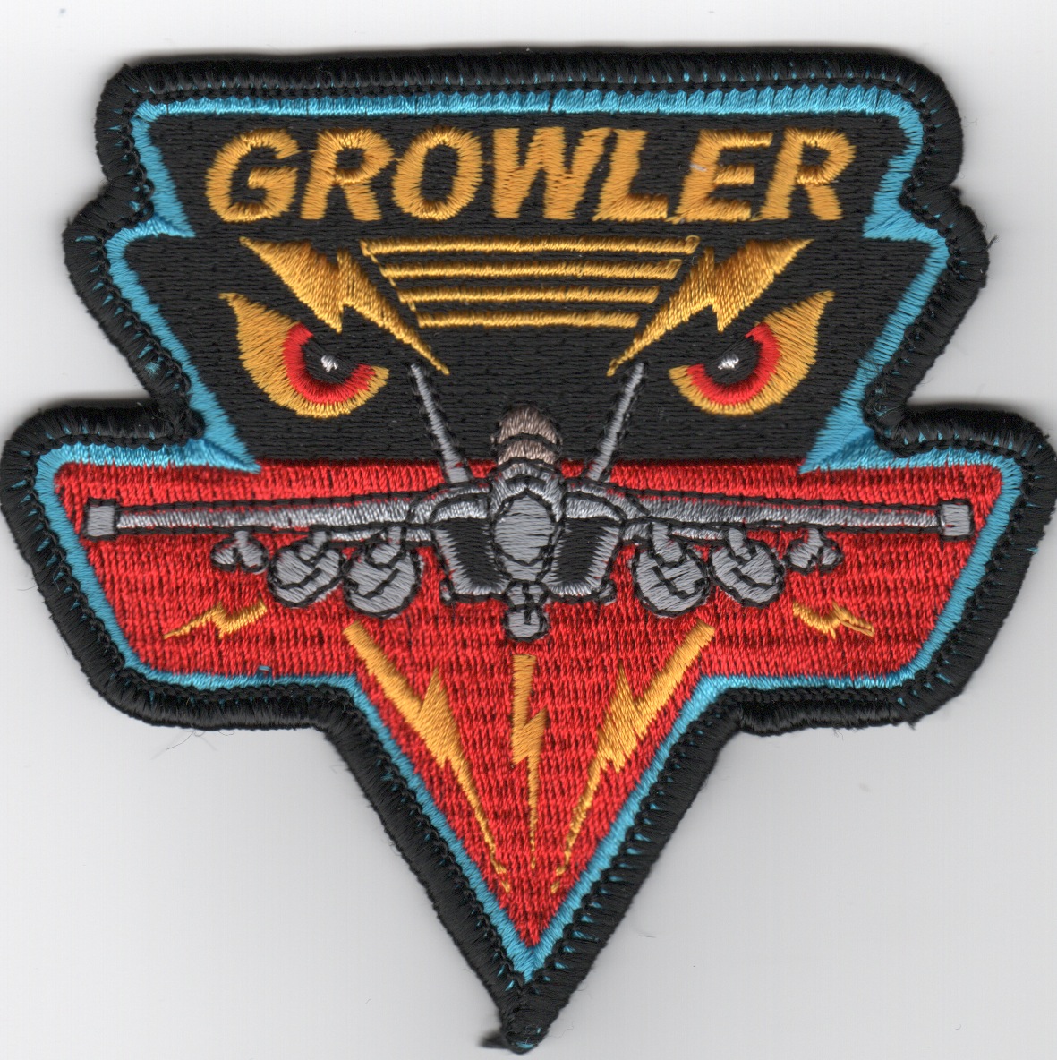 This is the black/red version of the EA-18G ‘Growler’ aircraft “triangle”, designed after the Grumman A-6 Intruder triangle. Worn by the VAQ community flying the EA-18G Hornet, this patch does not come with velcro attached.