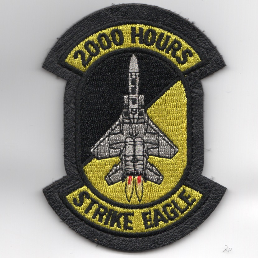 (Another AV8RSTUFF Creation): When I flew the mighty Strike Eagle (late ’90s), ‘QUIZMO’ and I worked on this design for several years to get it exactly right. As we ‘PCS’ed’ away, it fell to the wayside until last month when one of the squadrons asked us to complete the project. This is the “yellow” version of the LEATHER-bordered 2000 HOURS patch asked for and does come with velcro attached.