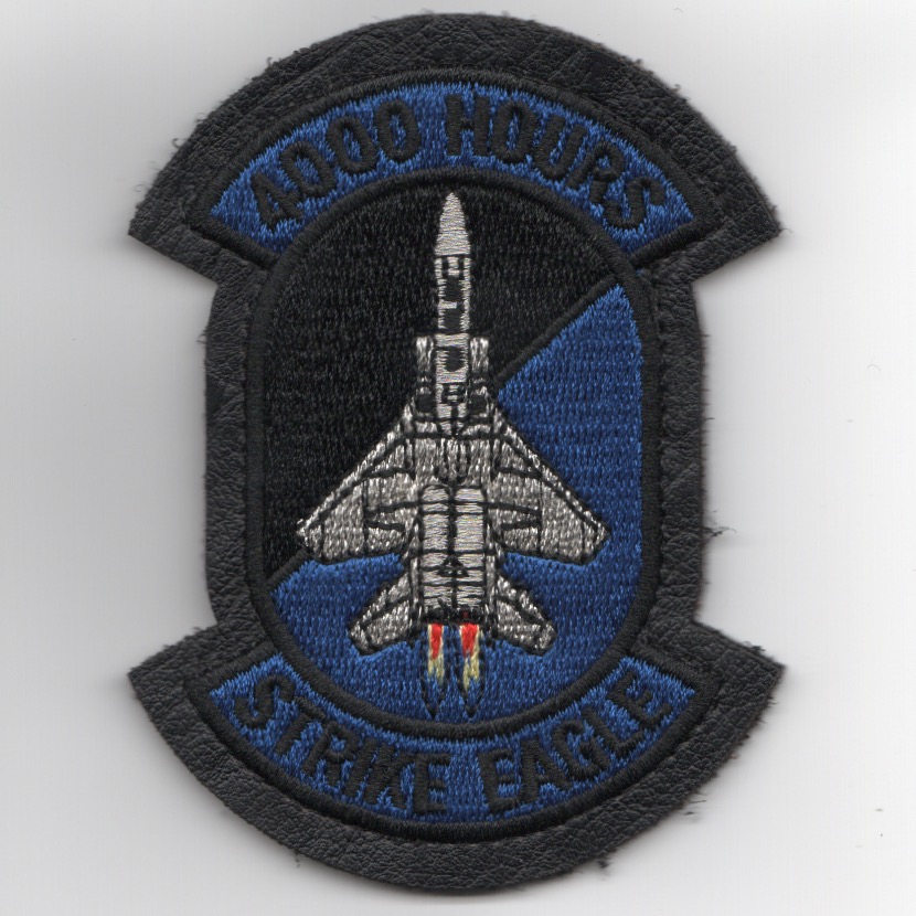 (Another AV8RSTUFF Creation): When I flew the mighty Strike Eagle (late ’90s), ‘QUIZMO’ and I worked on this design for several years to get it exactly right. As we ‘PCS’ed’ away, it fell to the wayside until last month when one of the squadrons asked us to complete the project. This is the “blue” version of the LEATHER-bordered 4000 HOURS patch asked for and does come with velcro attached.