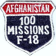 This is the shield-shaped F-18 patch created for those who flew 100 missions over Afghanistan worn to depict their experience level.