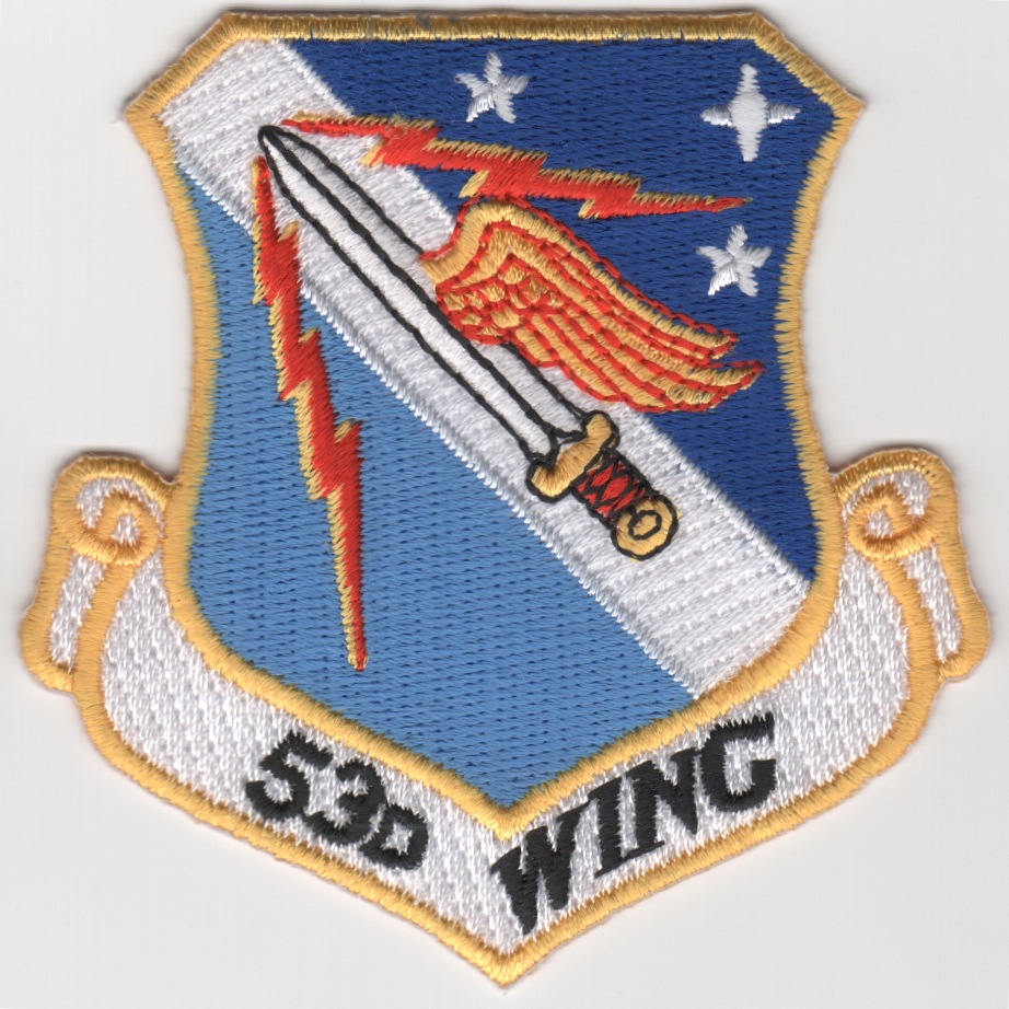 The 53d Wing (53 WG) is a wing of the United States Air Force based at Eglin Air Force Base, Florida. The wing reports to the United States Air Force Warfare Center at Nellis Air Force Base, Nevada, which reports to Headquarters Air Combat Command. This patch does not come with velcro already attached.