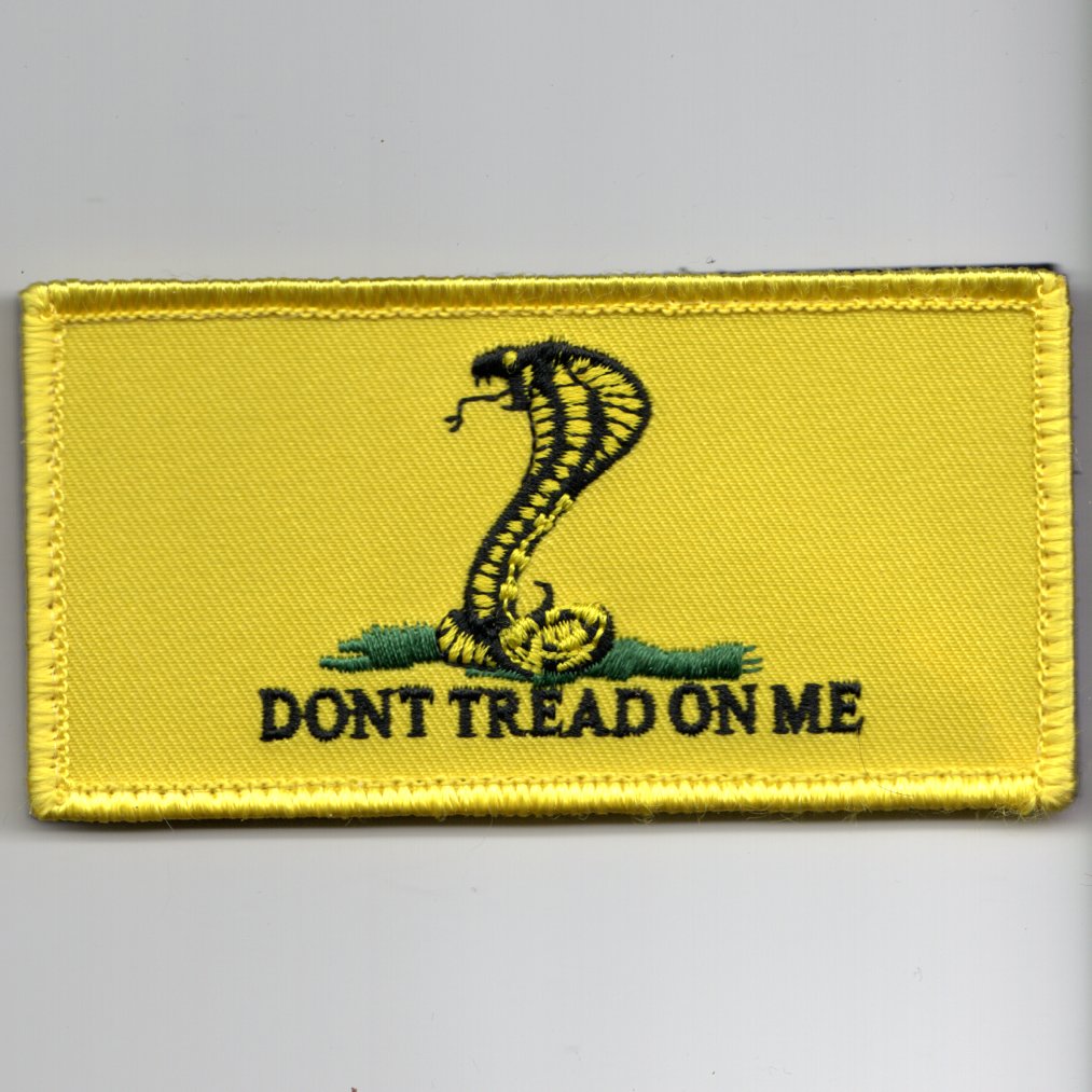 This is the yellow version of the famous “Don’t Tread on Me” flag with the lettering along the bottom that says “DONT TREAD ON ME”. This patch does come with velcro attached.