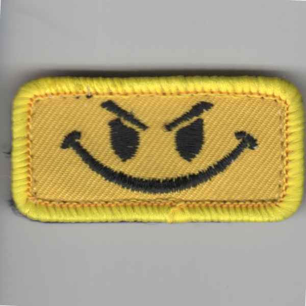 This yellow version of the “”””Smiley”””” patch is just a bit on the evil side. The smiley face looks like he is up to no good. This patch comes with velcro already attached.