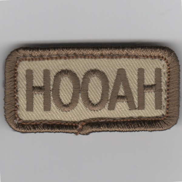 This is the desert version of the FSS tab that says HOOAH (it’s an Army ‘thang’).