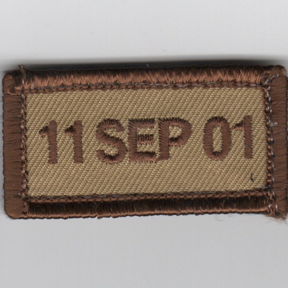 This is the Flight Suit Sleeve (FSS)/Pencil Pocket Patch (PPP) worn on the piece of velcro on the left sleeve of the flight suit. This is the desert version and has “”””11 SEP 01″””” on it — may we NEVER forget! This patch already has velcro on it.