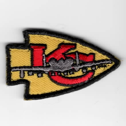(FSS) This is the yellow/red version of the 303rd Fighter Squadron Flight Suit Sleeve (FSS) patch that shows the A-10 WartHog on a yellow arrowhead coming directly at you. This patch DOES have velcro attached.