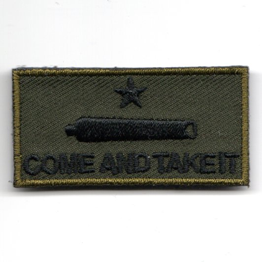 This is the “”””subdued w/black text”””” version of the FSS patch that says “”””COME AND TAKE IT””””. This patch comes with velcro attached.