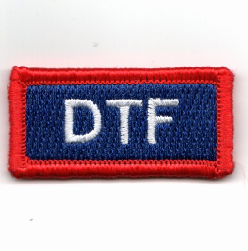 This patch was created for the 966 AACS/AWAC FTU (AWACS Training Squadron) at Oklahoma City, OK, but is also used by some of the USAF Training Squadrons and several US Navy Hornet squadrons. It says ‘DTF’, which is an acronym for “DOWN TO FLY”. This patch DOES come with velcro attached.