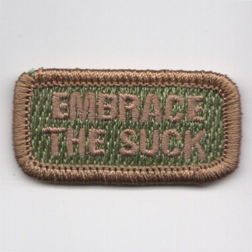 This is the OCP green version with “”””spice brown”””” letters of the FSS patch that says “”””Embrace the Suck””””. This patch DOES come with velcro attached.