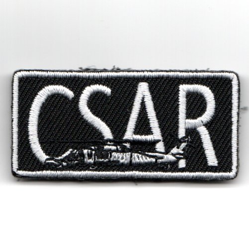 This is the black/white version of the FSS (Flight Suit Sleeve) patch for the Combat Search and Rescue (CSAR) community. It shows an HH/SH/MH-60 Rescue Helicopter with the ‘CSAR’ letters in white and comes with velcro attached.
