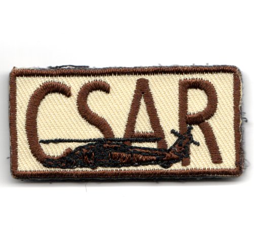 This is the desert version of the FSS (Flight Suit Sleeve) patch for the Combat Search and Rescue (CSAR) community. It shows an HH/SH/MH-60 Rescue Helicopter with the ‘CSAR’ letters in DARK BROWN and comes with velcro attached.