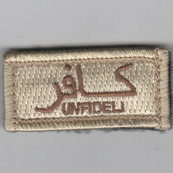 This is the desert version of the Flight Suit Sleeve “”””Infidel”””” patch. This patch comes with velcro attached.
