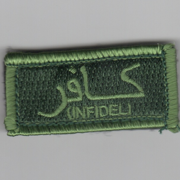 This is the subdued green version of the Flight Suit Sleeve “”””Infidel”””” patch. This patch comes with velcro attached.
