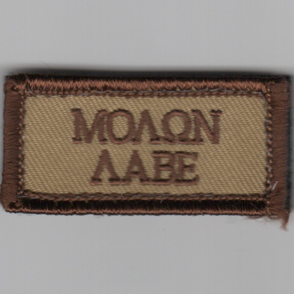 This is the desert version of the FSS patch that says “”””MOAON AABE””””…another “”””line”””” from the Spartan movie “”””300″””” that means “”””COME AND TAKE THEM””””. This patch comes with velcro attached.