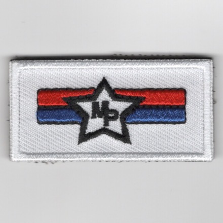 This was created for one of the MS ANG units showing two stripes (red/blue) on a white background….not a clue what it stands for, but does have velcro.