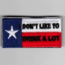 This is the STATE FLAG of TEXAS patch that says *I DON’T LIKE TO DRINK A LOT* and can be worn on the left sleeve of the flight suit. It shows the Single Star commemorating their slogan of “”””It’s a Whole Other Country””””. This patch comes with velcro attached!